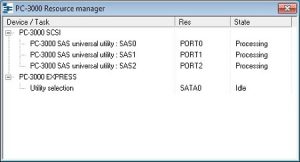 One of the most important new features of the PC-3000 SAS is allowing for launching of the PC-3000 utility and Data Extractor tasks as separate OS processes. The "PC-3000 SAS Resource manager" software makes using the new PC-3000 SAS very easy and effective. It manages port and related process activity, controls the status of the ports, checks process conditions and kills processes if necessary.